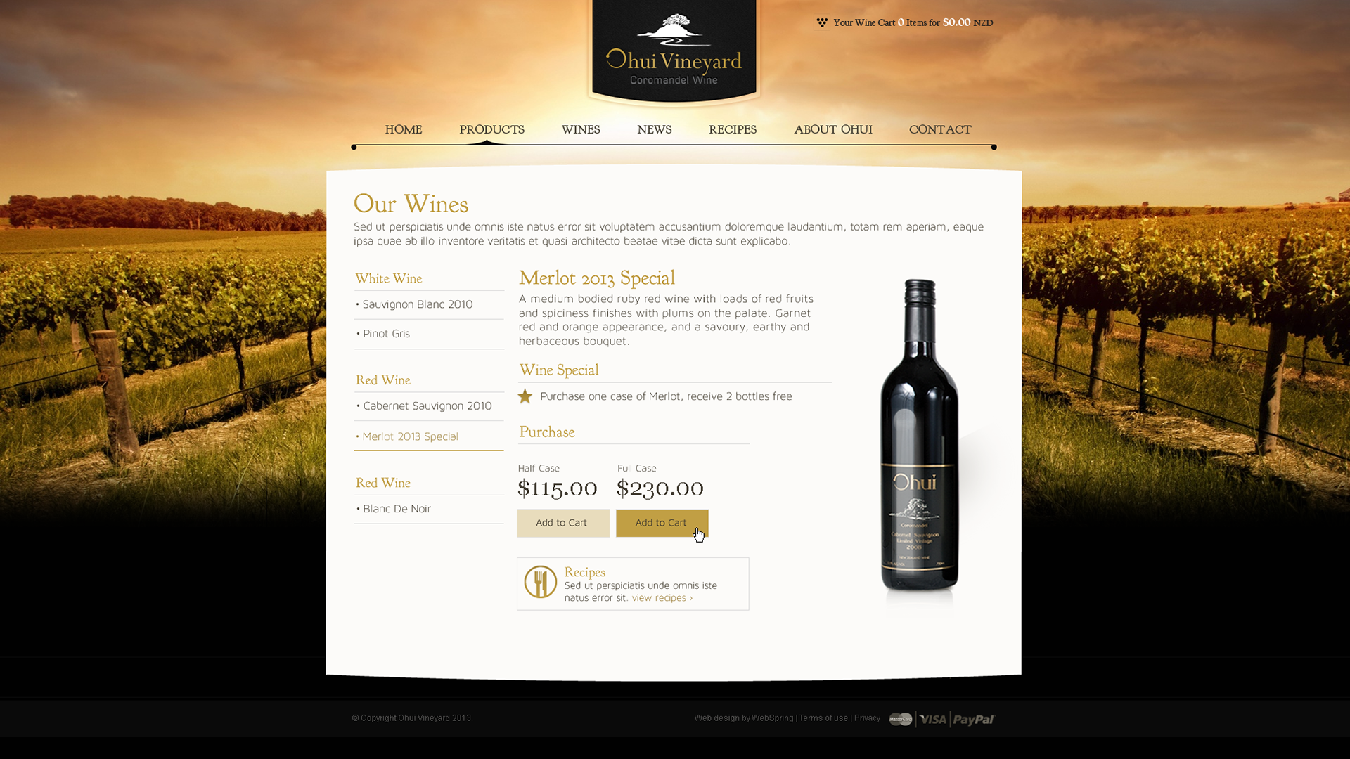 Ecommerce website design layout - www.ohuivineyard.co.nz